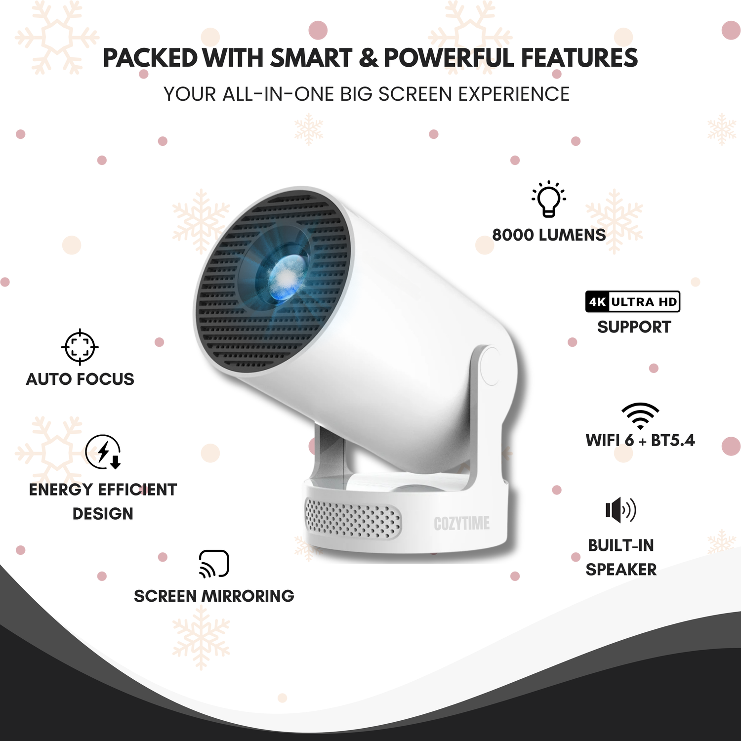 With its plug-and-play design and auto-focus + automatic keystone correction, you’ll get a perfect, square image in seconds. No technical skills needed — just plug in and enjoy.
