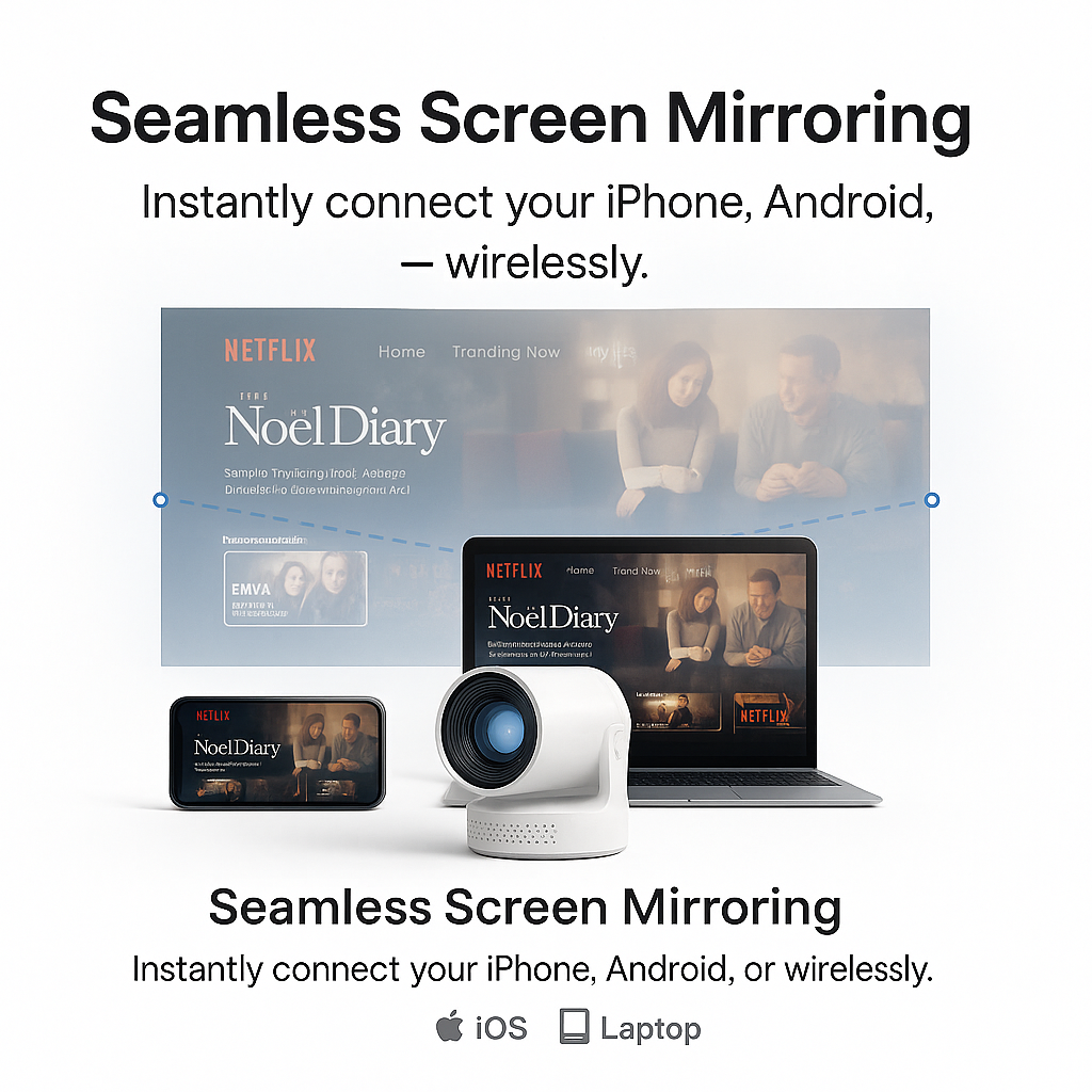 Yes — The MAG 3 PRO supports Wi-Fi screen mirroring from Android, iPhone, Windows, and Mac devices. Perfect for sharing photos, videos, and presentations instantly.